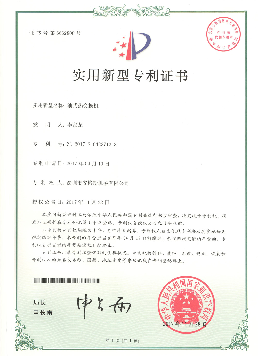 实用专利证书